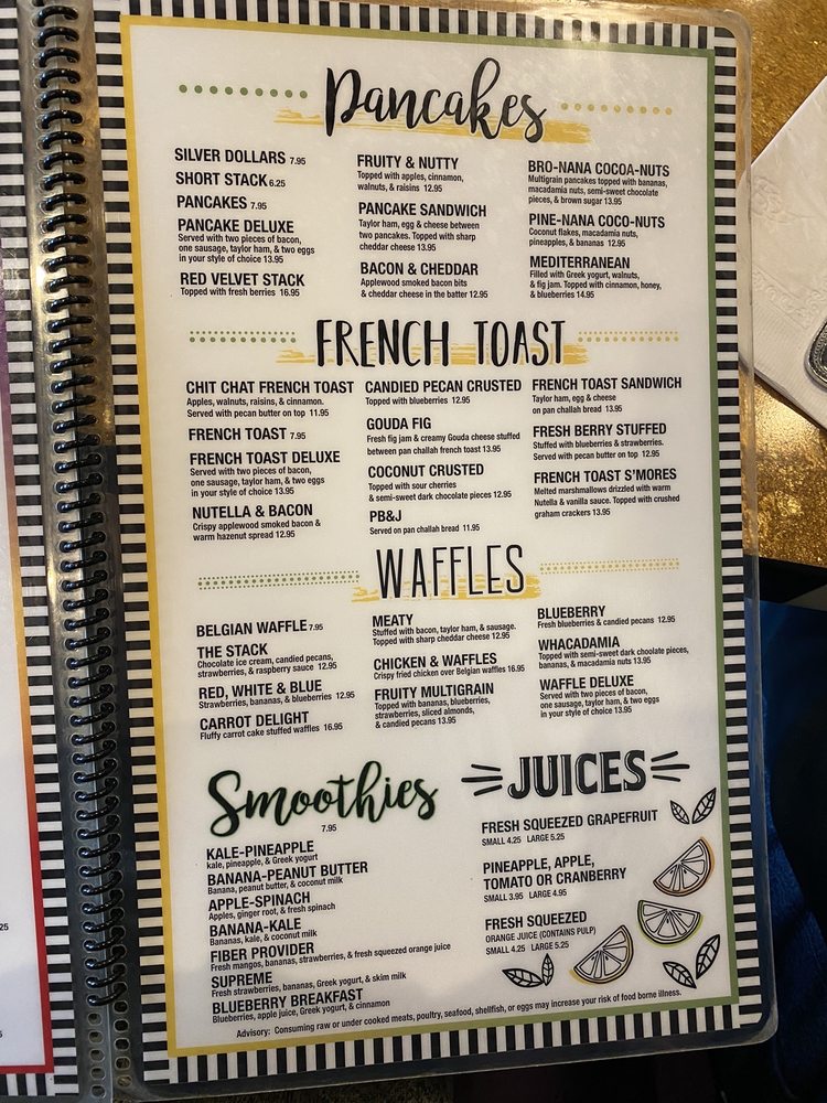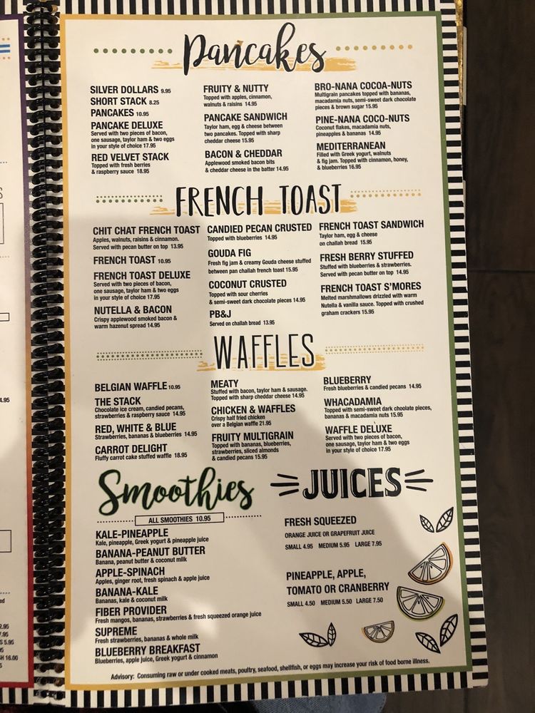 Chit Chat Diner, located in West Orange, NJ, is a trendy and casual diner that offers a variety of options for every meal of the day. The menu includes delicious smoothies like the AppleSpinach and BananaKale, along with a wide selection of bottled beers. Their Egg Whites options, such as the Body Builder and Essence, cater to those looking for healthier choices. Customer reviews rave about the flavorful Jerk Chicken wrap, best-ever blueberry pancakes, and eclectic twist on diner classics. The efficient service and extensive menu options make it a perfect spot for families and groups. The ambiance is described as delightfully bizarre and offers pretty views of NYC. Chit Chat Diner is a must-visit for those looking for a unique dining experience with a wide range of menu items.